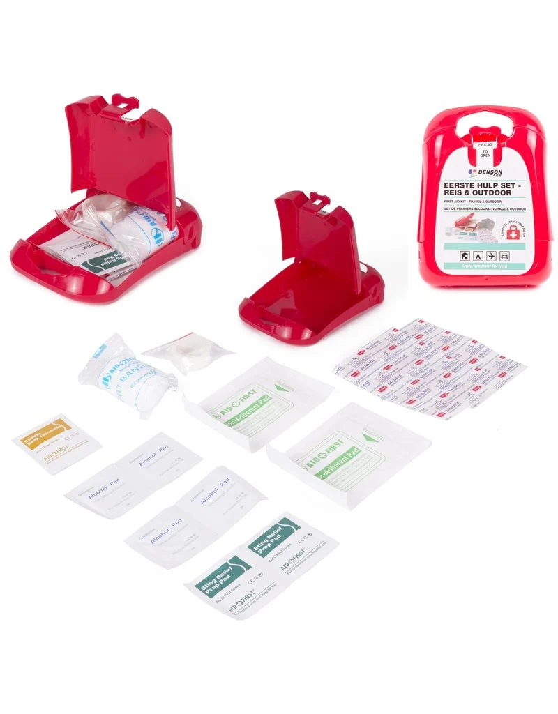 Dankzij deze EHBO set compact verbanddoos heb je altijd de basisbenodigdheden voor als je onderweg bent. Deze koffertjes zijn speciaal gericht op de wandelaar, fietser of reiziger. Hierdoor heb je altijd de juiste basis EHBO-spullen bij je. Deze set is makkelijk mee te nemen doordat de set compact is. Er kan altijd wat gebeuren onderweg, wees goed voorbereid en met deze set ben je dat. In deze zet zitten de volgende benodigdheden: 8 waterbestendige pleisters, 2 steriel doekjes, 2 niet-verklevende verbanden, zeep, 4 alcoholdoekjes, rolletje tape en bandage verband.